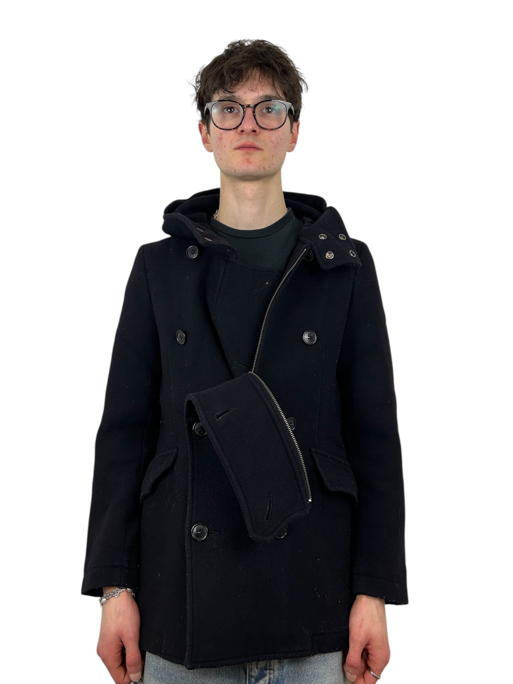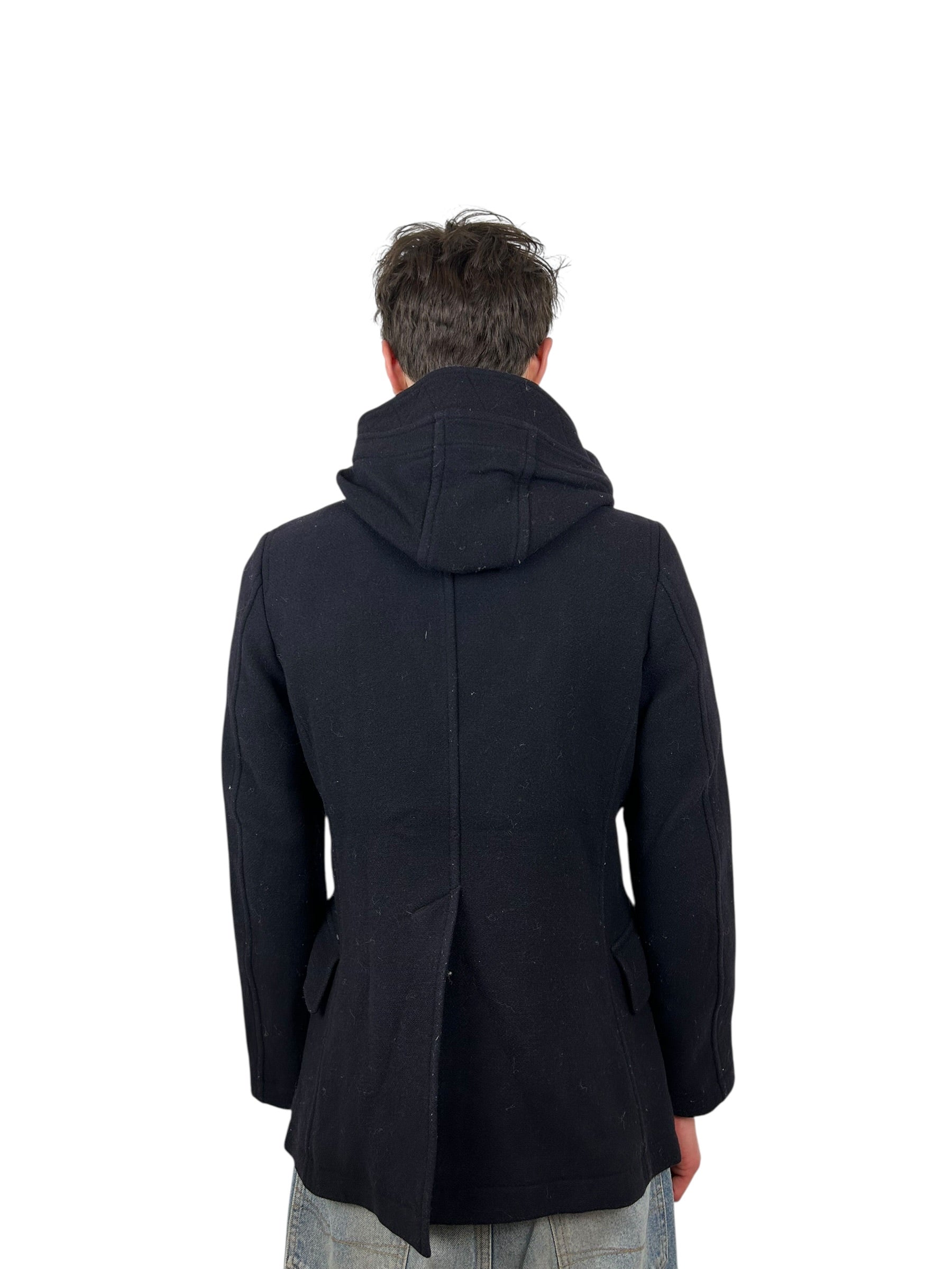 Zucca Asymmetrical Hooded Wool Toggle Zip Deep Navy Peacoat (L)